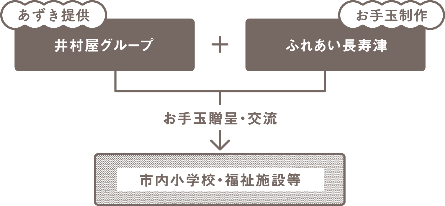 井村屋では、地域や社会の皆様に喜んでいただける取り組みを展開しています。2015年にはポランティア団体「ふれあい長寿津」と商品に使えないあずきを利用してお手玉を作り、津市内の小学校に提供しました。また、松阪市社会福祉協議会とお手玉作りの交流会も開催。小さなお手玉が地域のつながりを生み出しています。