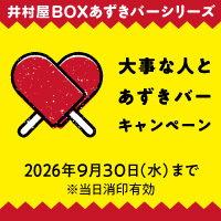 BOXあずきバーシリーズについているアズキキングマークを集めて応募! 今年も「大事な人とあずきバーキャンペーン」を実施いたします。 ◆プレゼント◆ 総計3,900名様(※当選者数は第1回・2回締切の合計人数です。) 【Aコース(10枚1口)】JCBギフトカード 5万円分 20名様 【Bコース(3枚1口)】井村屋商品詰め合わせ 3,000円相当 680名様 【Cコース(1枚1口)】あずきバーオリジナルQUOカード 1,000円分 3,200名様 ◆応募締切◆ ※当日消印有効 第1回締切:2026年7月31日(金) 第2回締切:2026年9月30日(水) たくさんのご応募お待ちしております!