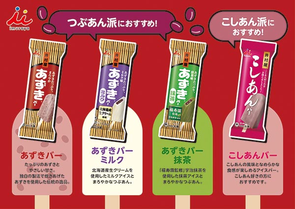 ●「あずきバー」シリーズ : https://www.imuraya.co.jp/goods/ice/c-azuki/