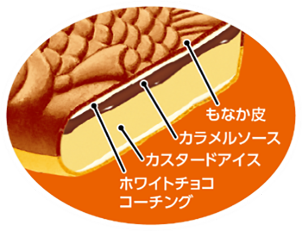 このたび、「たい焼アイス」シリーズの新フレーバーとして『たい焼アイス プリン』を発売します。本商品は、幅広い世代に愛される定番スイーツの「プリン」をテーマに開発しました。近年のレトロブームで人気が高まる“昔懐かしい固めプリン”をイメージし、卵の風味の濃いカスタードアイスに、ほろ苦いカラメルソースを組み合わせています。プリンの見た目をイメージした上下2色のもなか皮ではさむことで、味わいだけでなく見た目も楽しめるように仕上げました。たい焼やたい焼アイスが好きな方はもちろん、プリンがお好きな方にもおすすめの商品です。