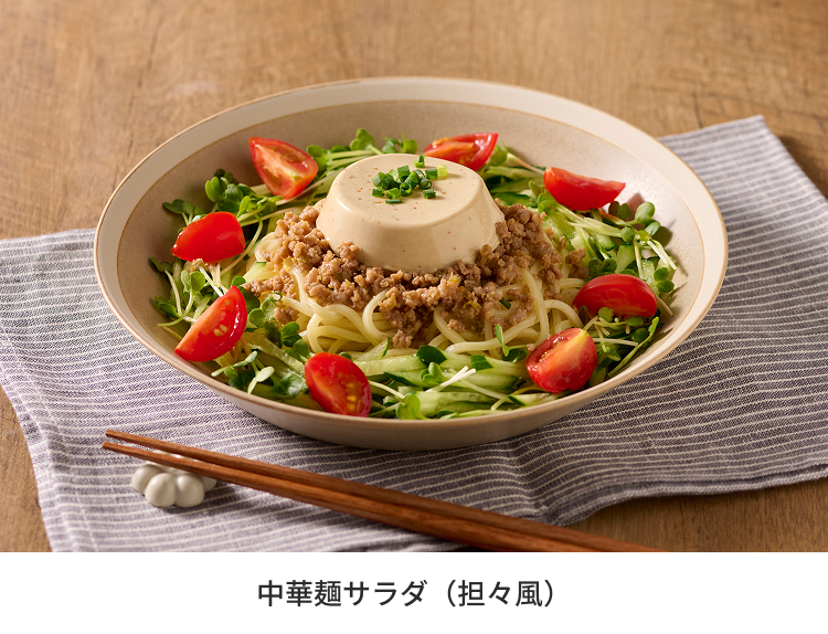 本商品はうどんのみならず、様々な食材と組み合わせることで、担々サラダや明太じゃがいもなど幅広いアレンジメニューをお楽しみいただけます。主菜・副菜を問わず、手軽にメニューの幅が広がります。