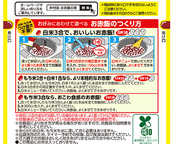 | 商品名 | お赤飯の素 | 2合用 お赤飯の素 |