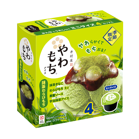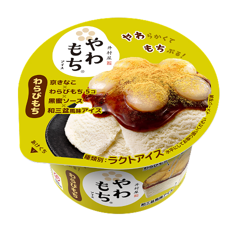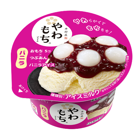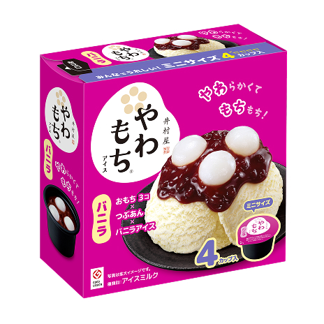 2012 年より発売している「やわもちアイス」は、「甘味処の和スイーツを、おうちで。」をコンセプトに、冷凍下でもやわらかく、もちもちしたおもちと、様々な素材を重ねた贅沢感を手軽に味わえるアイスです。本格的な味わいが楽しめる和スイーツとして、多くのお客さまよりご好評いただいています。
