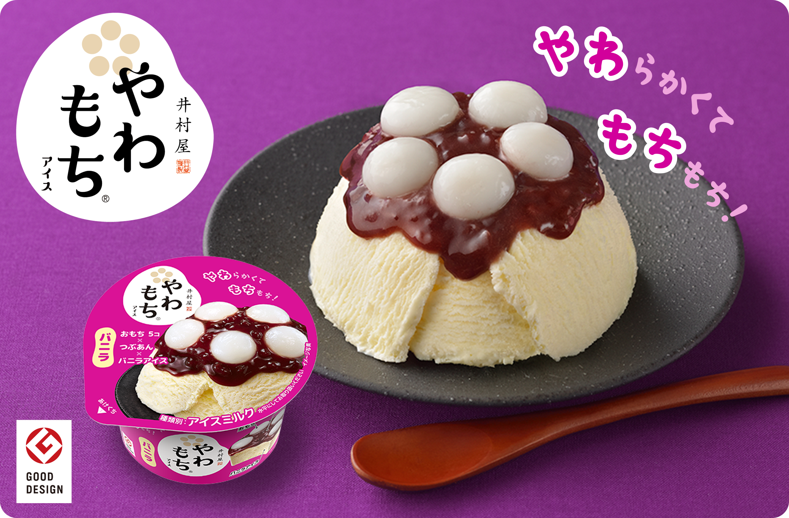 やわもちアイスシリーズは「甘味処の和スイーツを、おうちで。」をコンセプトに、冷凍下でもやわらかく、もちもちしたおもちと、さまざまな素材を重ねた贅沢感を手軽に味わえるアイスです。